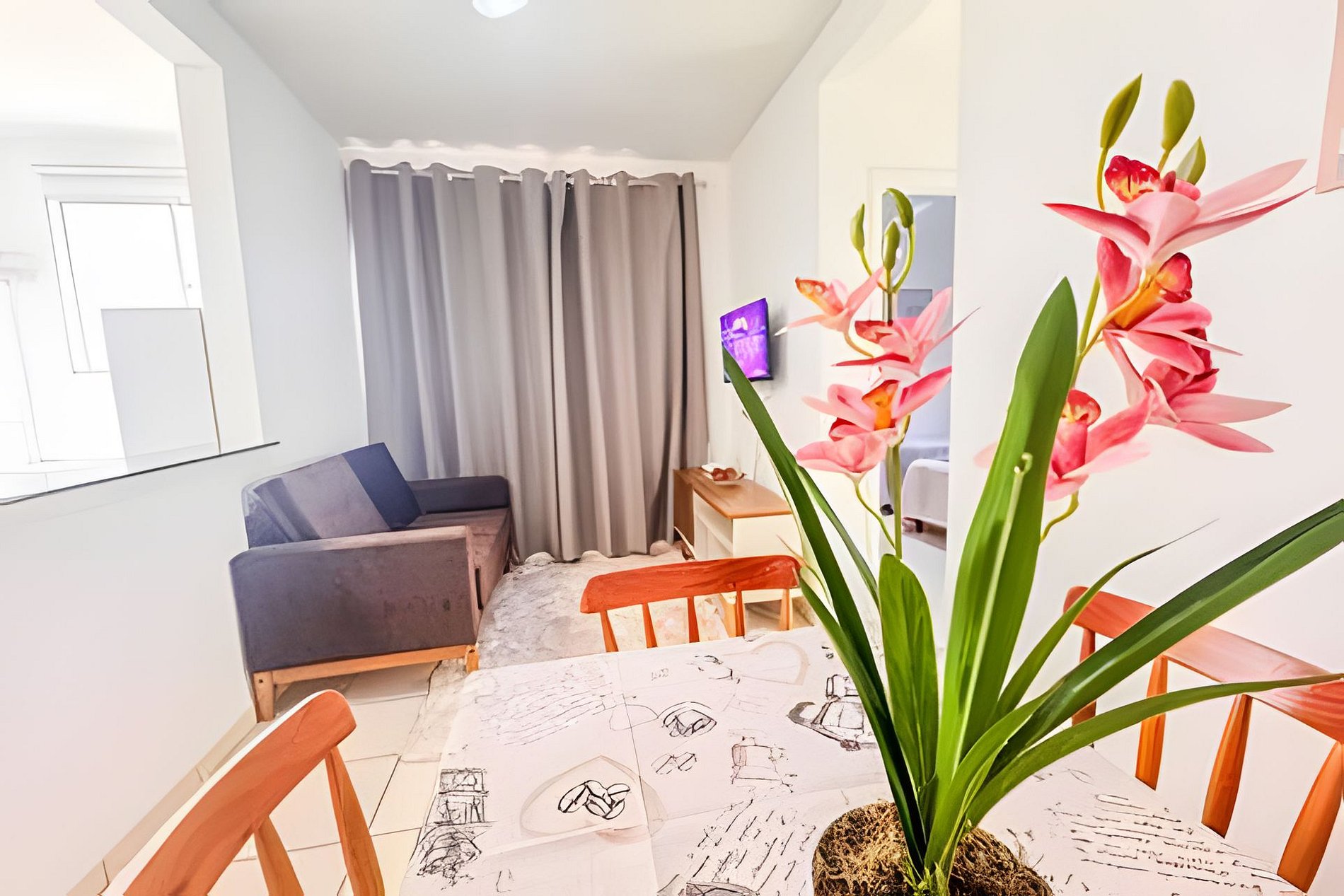 Conforto e praticidade para sua estadia: Dois quartos bem equipados: • Quarto 1: cama de casal, ar-condicionado. • Quarto 2: 2 camas de solteiro, vetilador de teto. Cozinha completa para preparar suas refeições com praticidade: geladeira, fogão, micro-ondas e jogo de jantar completo. Facilidades adicionais: ✓ Máquina de lavar roupas ✓ Ferro de passar ✓ Secador de cabelos ✓ TV de 32" - Canais abertos e fechados, além de filmes e séries totalmente liberados para você aproveitar ao máximo. Localização privilegiada: ✓ Próximo a restaurantes e supermercados — tudo a poucos minutos a pé ✓ Bairro tranquilo e agradável ✓ Segurança 24h em condomínio com portaria Serviço de limpeza profissional, garantindo um ambiente impecável e higienizado, com a qualidade e confiança que você merece. Não possui elevador mas o Apartamento fica localizado no térreo